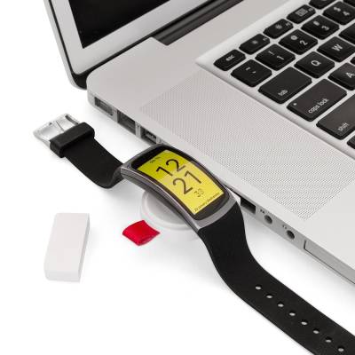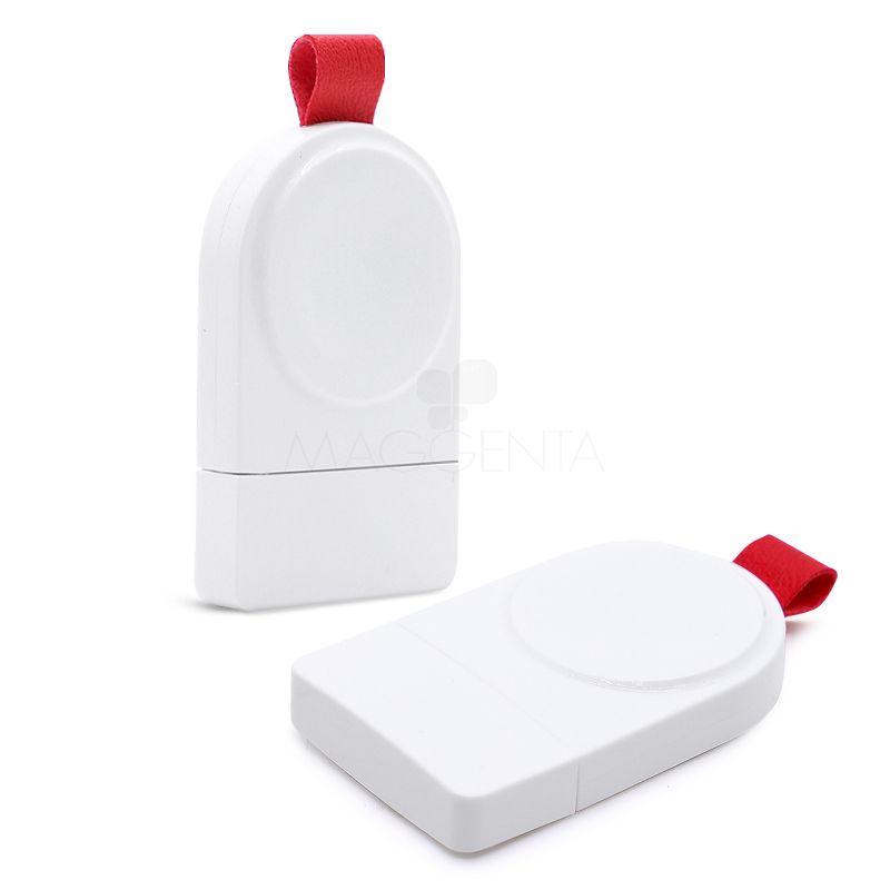 Carregador por indução personalizado produzido em ABS e alça de couro sintético. Possui interface USB com entrada de 2W, portátil e compacto, possibilita carga magnética conectado à qualquer fonte de energia USB 2W. o Iwatch é compatível apenas com os smartwatches da Apple, séries: 1, 2, 3 e 4. Ideal para brindes promocionais e distribuição em feiras e eventos corporativos.