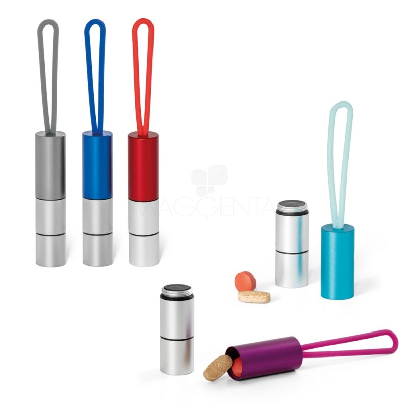 Lanterna de metal personalizada com argola de mão em silicone, compartimento para porta comprimidos e 1 led diferenciado. Ideal para brindes promocionais e eventos corporativos. Acompanha 3 pilhas LR14.