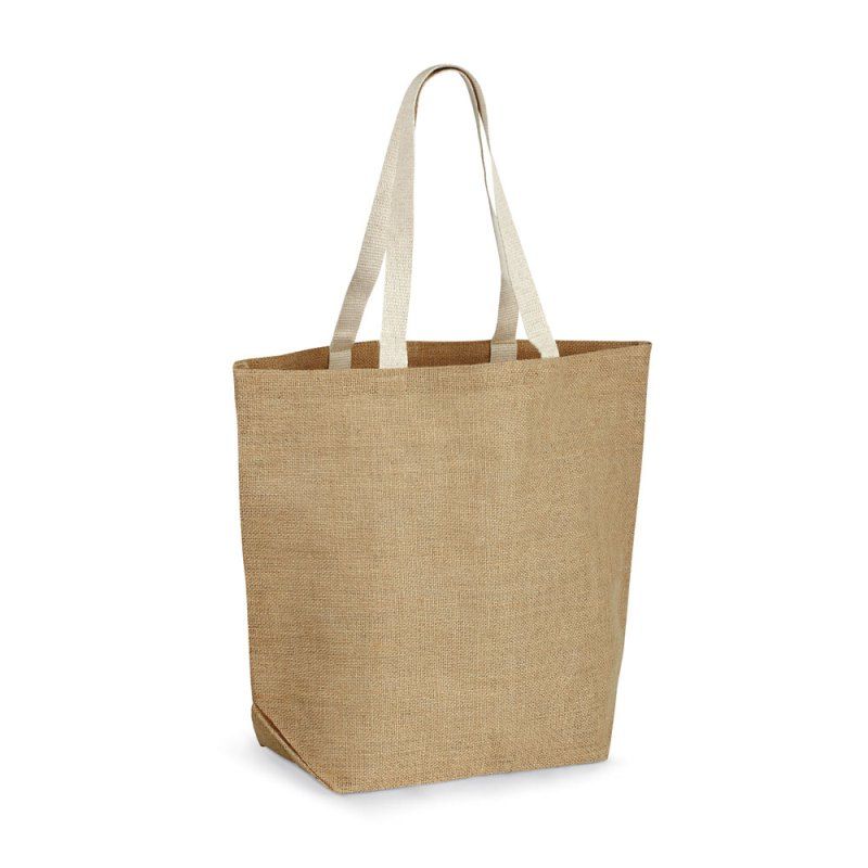 Sacola ecológica personalizada produzida em tecido juta 360 g/m², Possui amplo espaço interno com laminação interior e alças de 60 cm. Ideal para brindes promocionais e eventos corporativos.