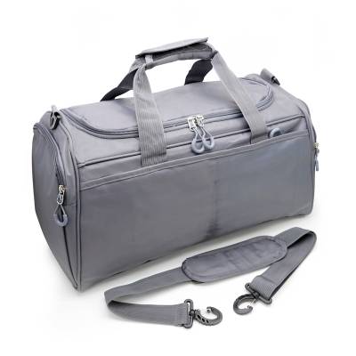 Bolsa mala de viagem esportiva personalizada produzida em nylon, possui bolso principal com fechamento por zíper, alça de mão com reforço e fechamento por velcro, alça de ombro removível com engate rápido, acabamento frontal em costura reforçada, bolsos laterias impermeáveis, zíperes com puxadores curvados emborrachados, amplo espaço interno, base inferiores emborrachadas e bolso frontal com fechamento por zíper. Ideal para brindes promocionais e eventos corporativos.