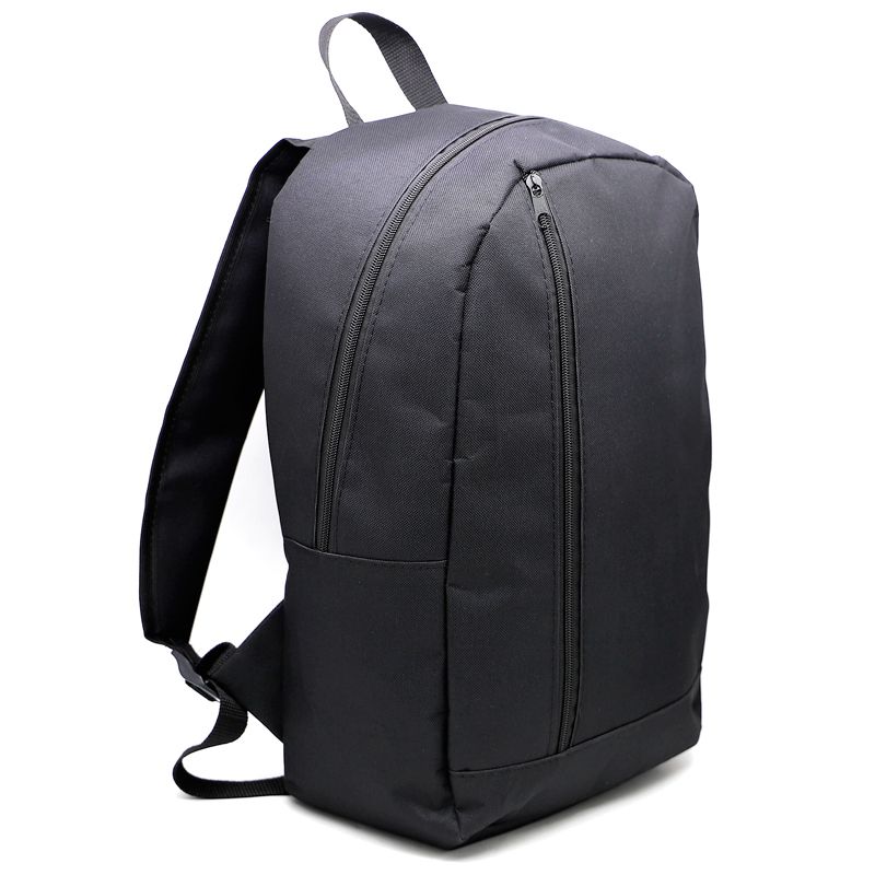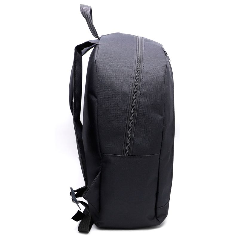 Mochila personalizada produzida em nylon com amplo espaço interno. Possui bolso frontal, alças ajustáveis, alça de mão e zíper com puxadores de metal. Ideal para brindes promocionais e eventos corporativos.