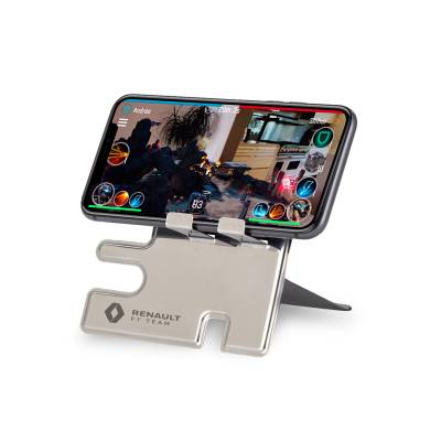 Porta celular personalizado de metal com design diferenciado. Produzido em chapa de metal 0,64mm, Possui base de apoio inferior, compartimento para smartphones de até 17mm de espessura (com capinha) e suporte lateral porta Relógios Smartwatch (não incluso). Ideal para brindes promocionais e eventos corporativos. Gravação a Laser.*Smartphone não incluso ao produto.