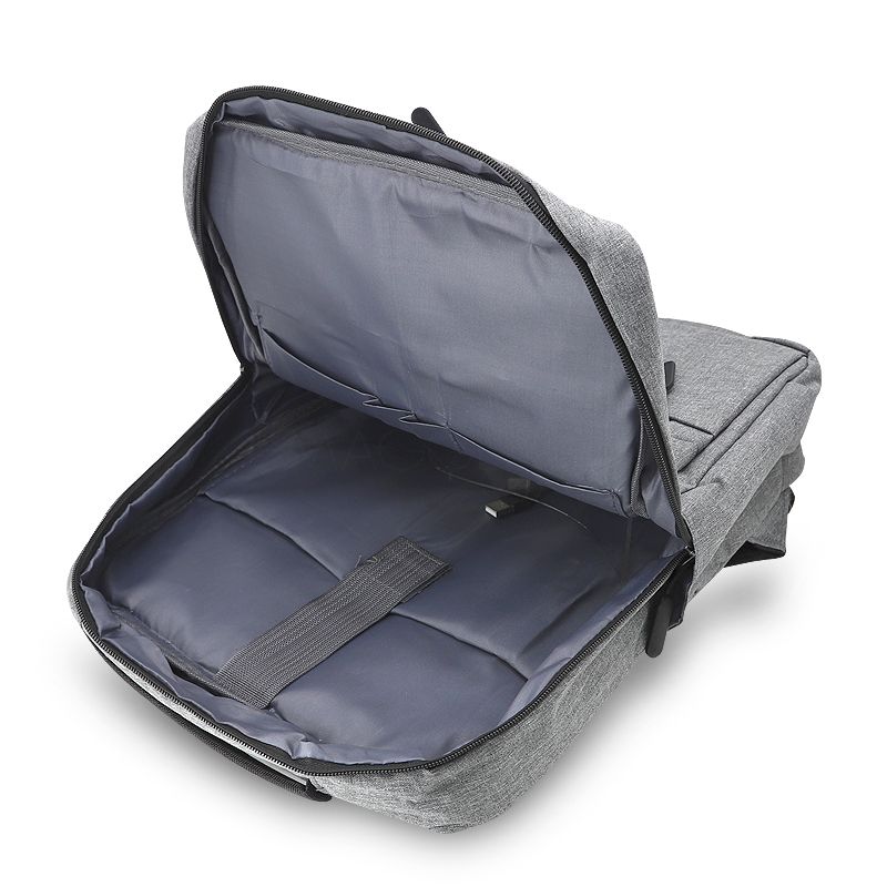 Mochila para notebook personalizada produzida em nylon com compartimento para notebook até 15,6 polegadas. Contém compartimento grande 18L com divisórias para documentos, eletrônicos e caneta, dois compartimentos frontais com abertura vertical, bolso lateral e adaptador USB externo com cabo acoplado, permitindo a conexão de um carregador portátil de dentro da mochila e transferência da carga para o lado externo, ocultando o carregador e viabilizando a utilização do celular durante o processo. Contém zíperes com pegadores plásticos, alça de mão em nylon e alças para as costas ajustáveis com revestimento espumado antitranspirante. Ideal para brindes promocionais e eventos corporativos. Power Bank não acompanha o produto. Obs: Para a entrada lateral USB funcionar como carregador, é necessário a aquisição de um de nossos Power Banks. * Imagem ilustrativa.