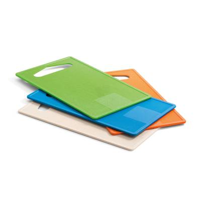 Tábua de corte personalizada produzida em bambu com(50%) e PP (50%). Contém um quadrado liso no fundo da tábua adequado para personalização. Ideal para pequenos cortes de alimentos e legumes em geral.
