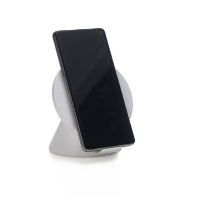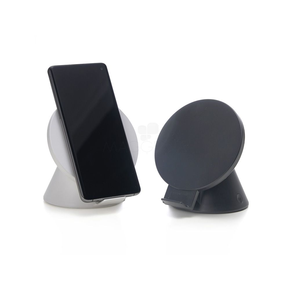 Caixinha de Som bluetooth com carregador wireless. Produzido em material plástico, a caixinha possui antiderrapantes emborrachados na parte inferior, ao ser inclinado o produto também pode ser utilizado como suporte para o celular. Para desfrutar do carregamento por indução (sem fio) é fundamental que o celular possua a tecnologia QI – desta maneira é possível carregar o celular posicionando-o sob carregador, sendo necessário apenas conectar o carregador à uma fonte de energia (USB ou diretamente na tomada). Acompanha cabo USB Tipo-C. Ideal para brindes promocionais e eventos corporativos.