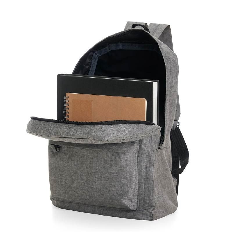 Mochila confeccionada em Nylon 14 Litros. Contém bolso frontal com zíper, alça de mão em nylon e alças para as costas ajustáveis.