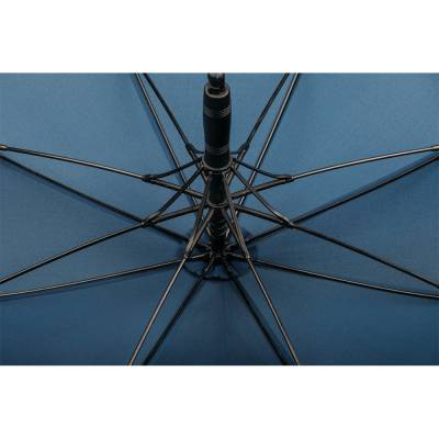 Guarda-chuva em 190T pongee, varetas em fibra de vidro, cabo em alumínio e haste revestida em borracha. Guarda-chuva à prova de vento com abertura automática. Fornecido em bolsa com alça curta para facilitar transporte.