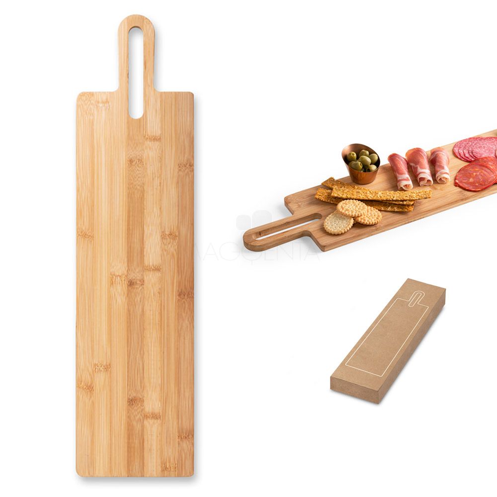 Tábua de servir em bambu com pega, de grande dimensão e de utilização versátil.