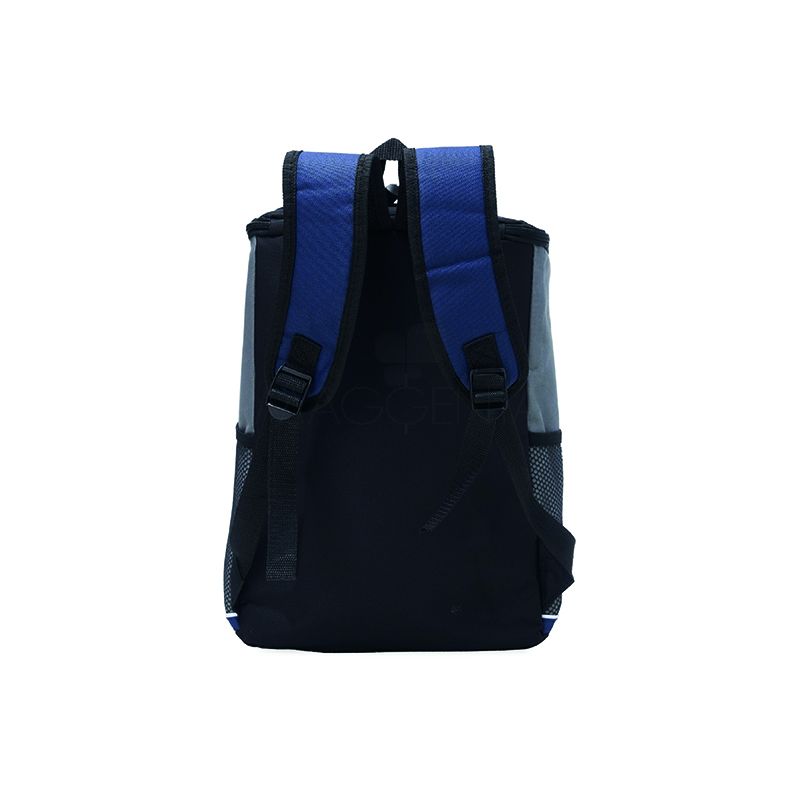 Bolsa térmica personalizada de poliéster. Possui dois compartimentos e capacidade de 18 litros. A bolsa possui revestimento térmico em PEVA atóxico, bolsos laterais telados, alça de mão e alça para as costas com revestimento espumado.