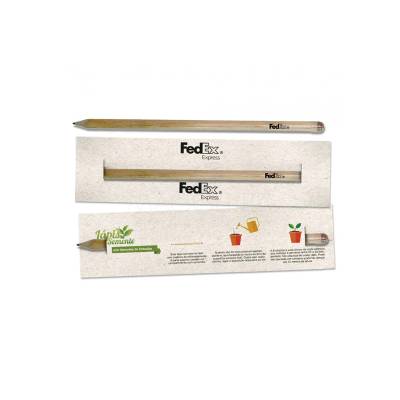 Lápis semente personalizado com embalagem de papel reciclado sem o uso de plástico. O brinde perfeito para divulgar sua empresa em eventos corporativos, brindes personalizados e campanhas ecológicas.