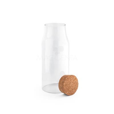 Garrafa de vidro personalizado com tampa de cortiça. Possui capacidade de até 800 ml. Conserva líquido quente por até 2 horas e líquido frio até 3 horas. Fornecido em caixa presente de papel craft. Ideal para divulgar sua empresa em eventos corporativos, brindes personalizados e campanhas.