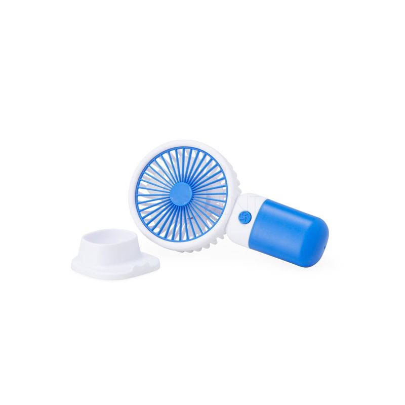 Mini ventilador plástico recarregável com base removível e botão de acionamento. Acompanha cabo usb. Ideal para sua campanha de endomarketing ou premiação de colaboradores.
