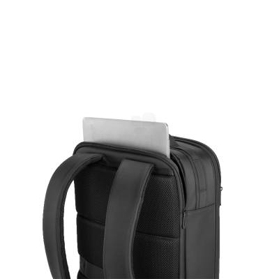 Mochila para notebook produzida em tecido de poliéster, alça de ombro acolchoada, aceita notebooks de até 15,6”. Design ergonômico, alça de ombro ajustável, porta USB na lateral da mochila, possui engate para mala de viagem, bolso frontal com zíper para acesso rápido.