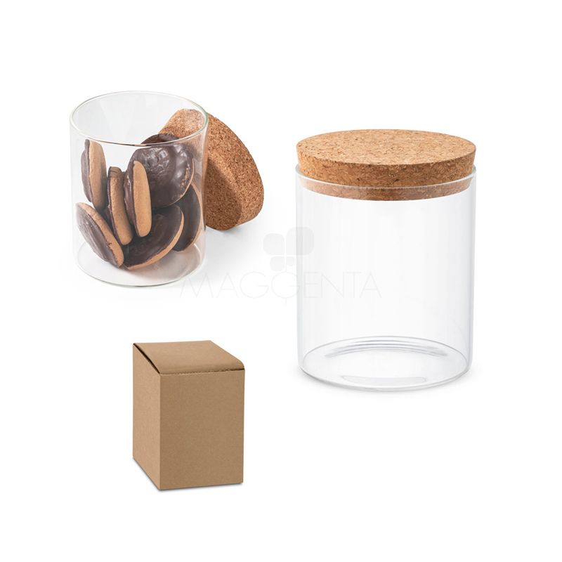 Frasco em vidro borosilicato e tampa de cortiça. Capacidade até 700ml. Fornecido em caixa presente de papel craft. Ideal para sua campanha de endomarketing ou premiação de colaboradores.