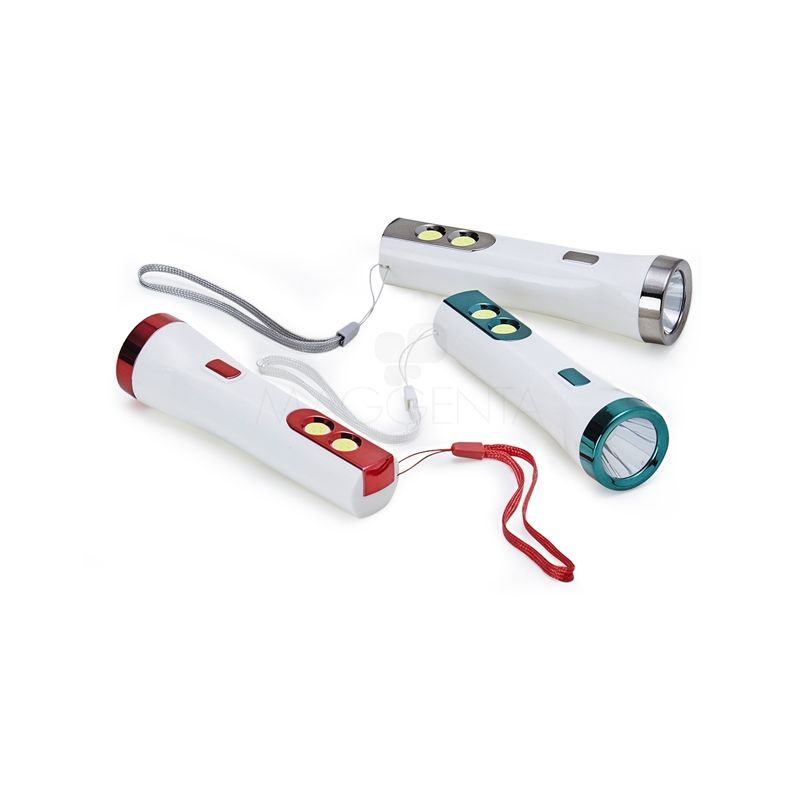 Lanterna plástica recarregável personalizada, com um LED com 3 estágios de iluminação e dois LED laterais com função luminária. Possui cordão de nylon para transporte e acompanha cabo USB. Ideal para divulgar sua empresa em eventos corporativos, brindes personalizados e campanhas promocionais.