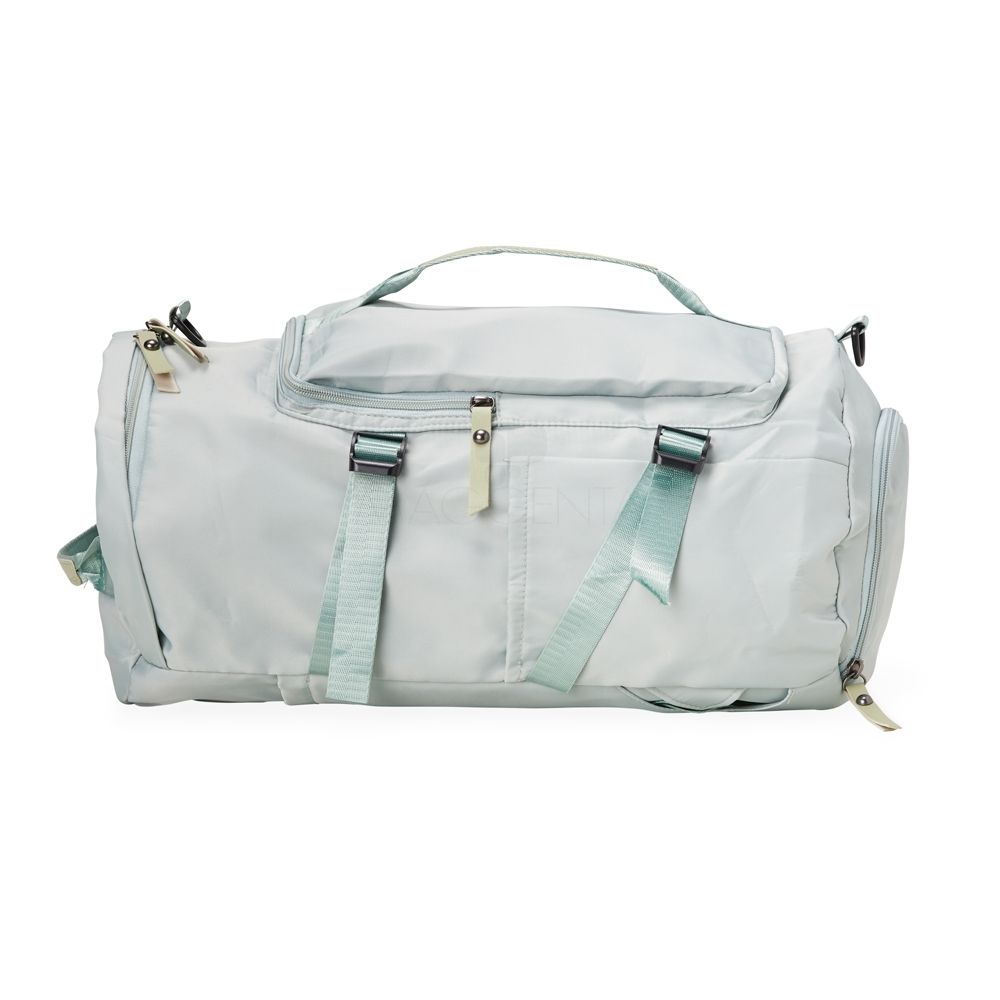 Bolsa esportiva de 25 litros em poliéster de impacto impermeável com três compartimentos, sendo um deles exclusivos para tênis. Compartimento principal com dois bolsos, sendo um deles com zíper exclusivo para itens molhados. Com bolsos laterais e duas alças de mãos, a bolsa contém alças de compensação, alça transversal removível e alças para as costas ocultas no compartimento inferior, podendo ser transportada como mochila.