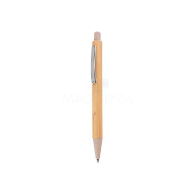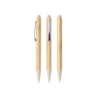 Caneta de bambu personalizada com click e ponteira de fibra de trigo / ABS. Possui esferográfica azul e acionamento da escrita por click. Acompanha estojo de papel impresso com imitação em bambu. Ideal para divulgar sua empresa em eventos corporativos, brindes personalizados e campanhas promocionais.