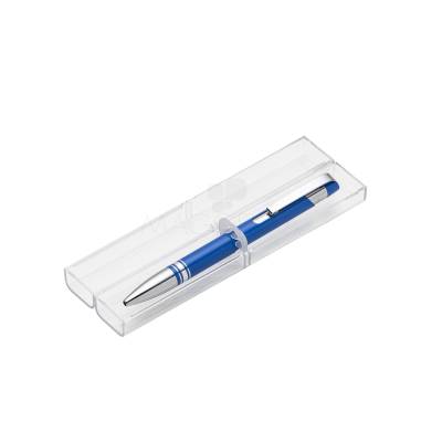 Conjunto caneta com estojo de acrílico. Caneta semi metálica com carga esferográfica azul e acionamento por clique. Ideal pra brindes personalizados e eventos corporativos.