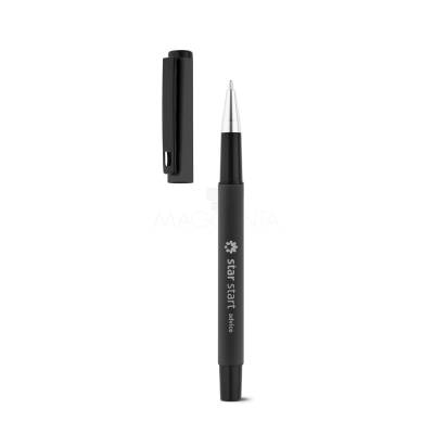Roller em alumínio com clipe acabamento emborracha. Disponível em várias cores. Escrita em preto.