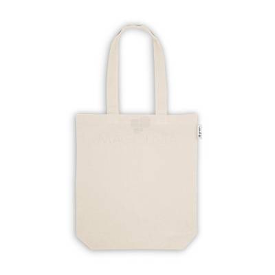 Sacola em algodão (220 g/ m²) composta por 50% algodão e 50% algodão reciclado, com alças de 60cm.