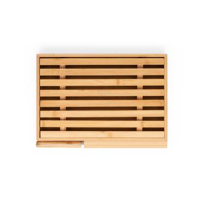 Tábua para pão em bambu com faca em aço inox. Grelha removível para fácil remoção de migalhas. Fornecido em caixa presente em papel kraft.