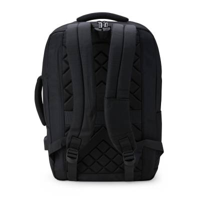 Mochila confeccionada em Nylon, 21 litros, com 4 compartimentos, sendo o principal com bolso para notebook de 15.6 polegadas. Possui dois bolsos externos, bolsos e divisórias internas para acessórios. A mochila possui suporte externo USB, alça com bolso integrado para cartões, alça para engate em malas de viagem e duas alças de mão, sendo uma delas para o transporte da mochila no formato pasta.