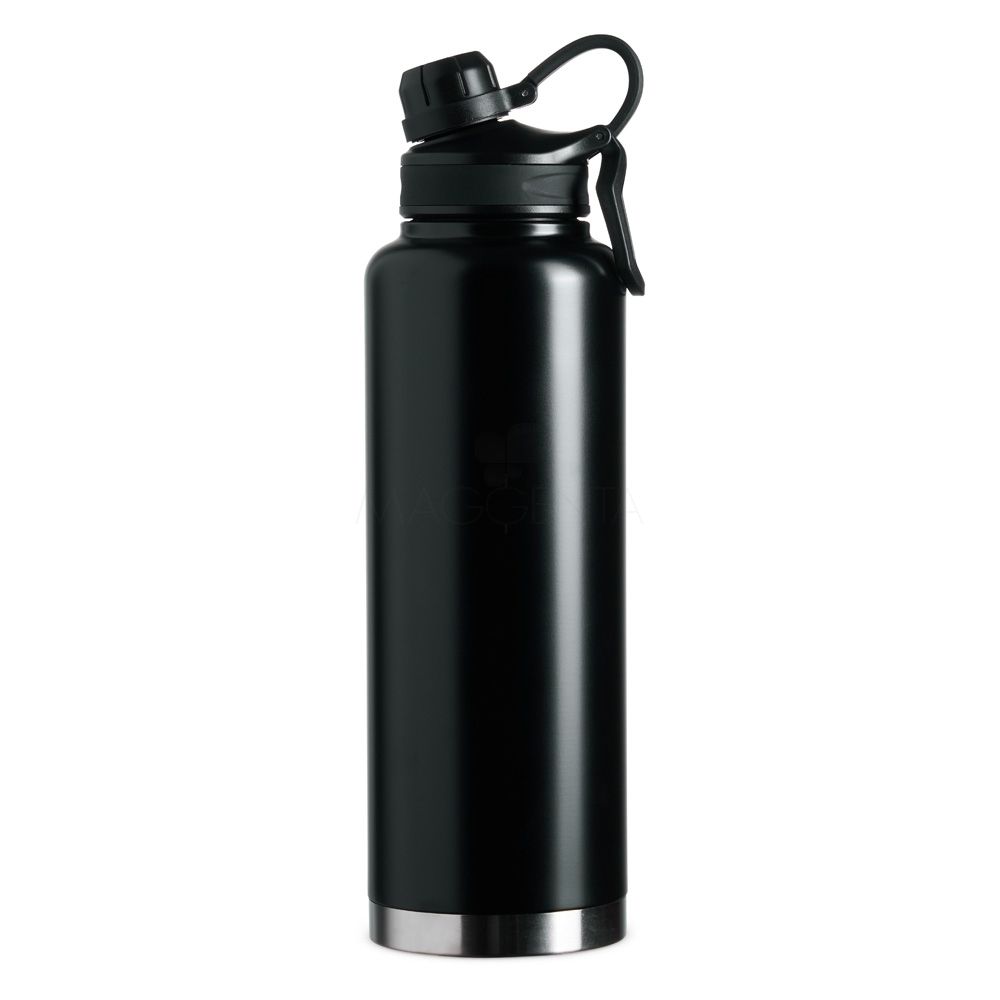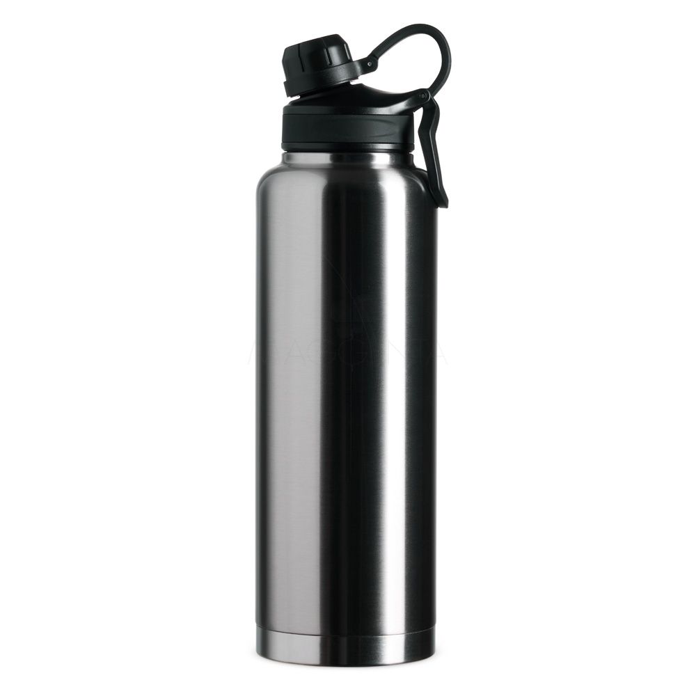 Garrafa Térmica em inox 304 de parede dupla com capacidade de 1,5 litros. Possui tampa com alça para transporte e tampa rosqueável de proteção para o bocal.