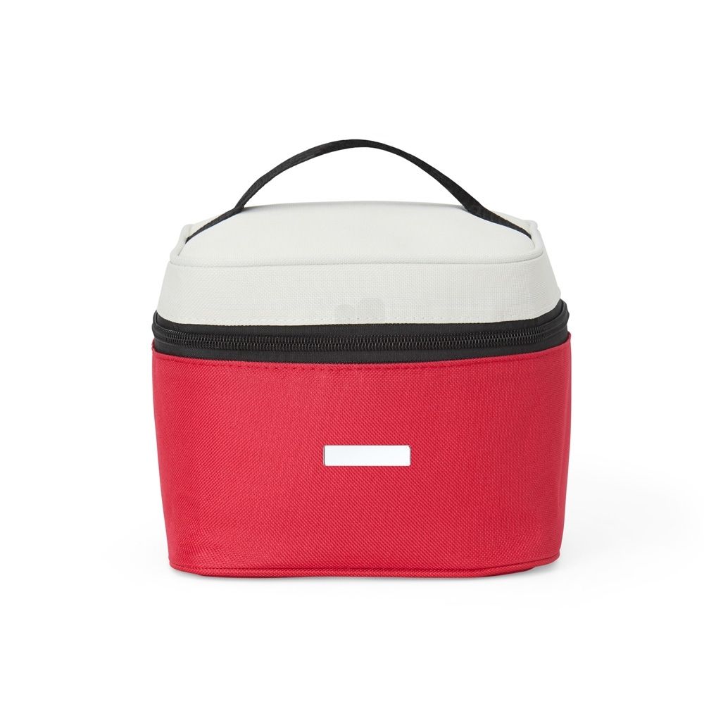 Bolsa térmica de nylon 4 litros. Possui bolso telado e acompanha plaquinha metálica.