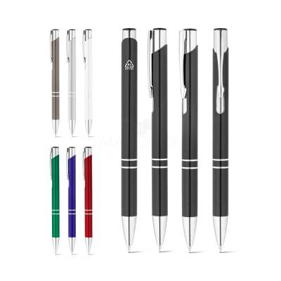 Esferográfica em alumínio 100% reciclado. Escrita azul.