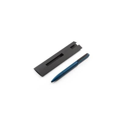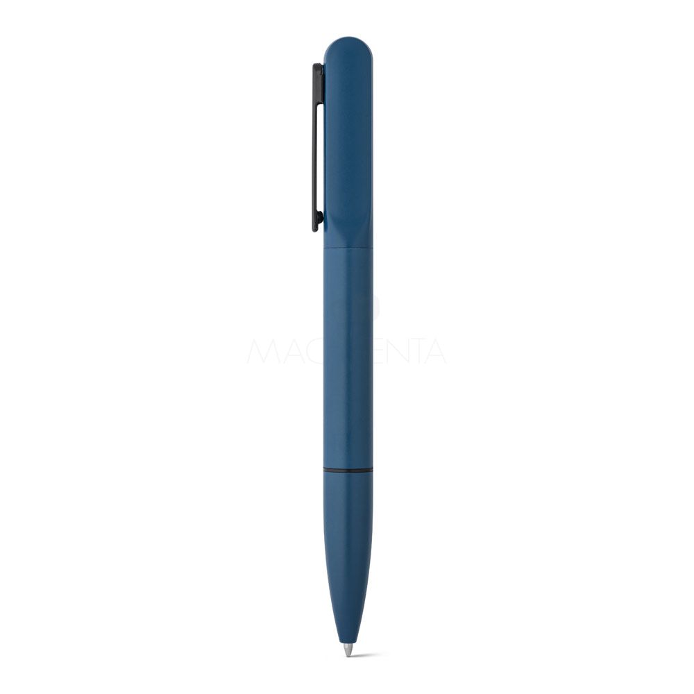Esferográfica em alumínio 94% reciclado e escrita em azul. Quando personalizado no clipe permite que ao ser rodado ilumine o seu logotipo ou personalização. Fornecida em bolsa de oferta.