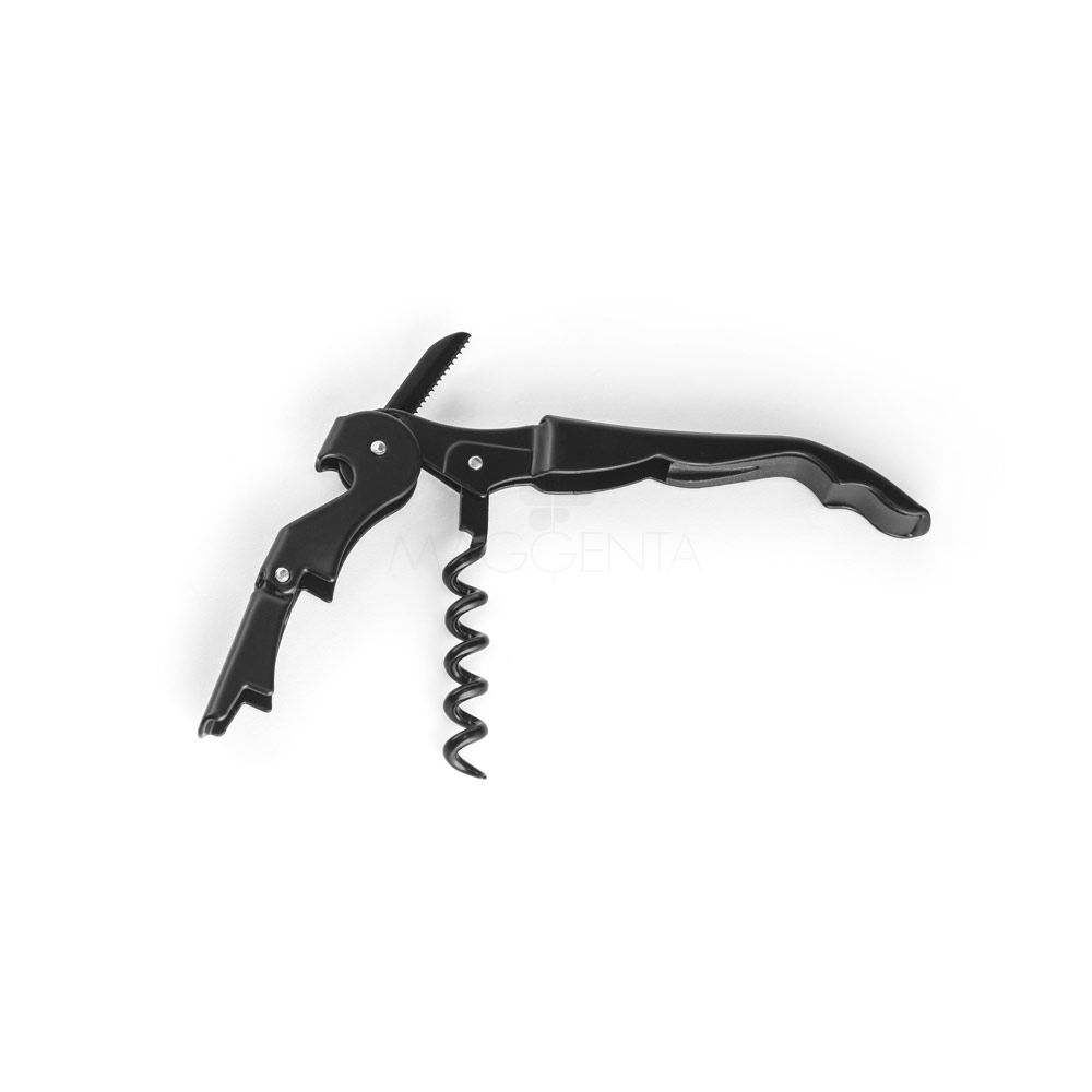 Saca-rolhas em metal e PP com abridor de garrafas e canivete de sommelier. Espiral em aço inox.