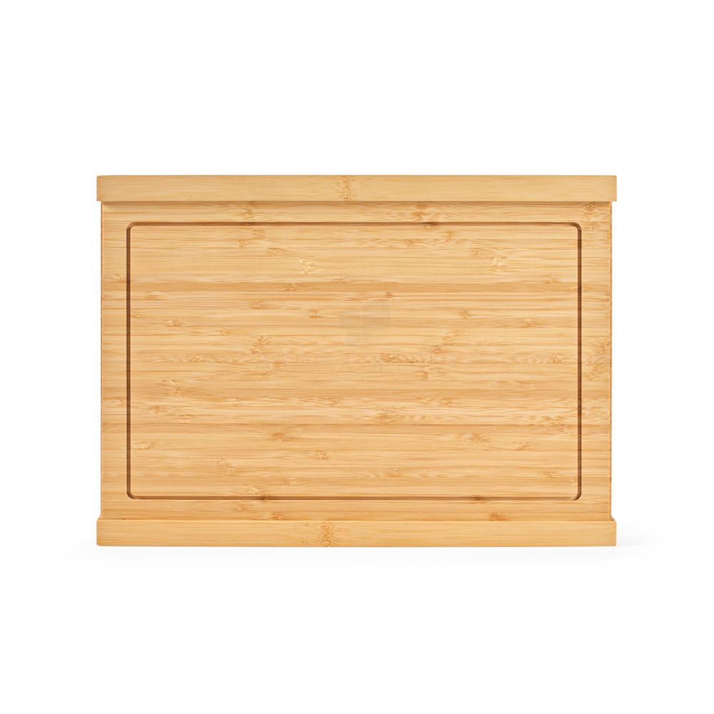 Conjunto de tábuas em bambu com 3 facas inclusas. Composto por duas tábuas: a tábua exterior e a tábua interior que assume duas funcionalidades - um compartimento para três facas inclusas (faca de legumes, faca de pão, faca de cozinha) e como tábua de corte. Fornecida em caixa presente em papel kraft reciclado. Certificação EU Food Grade. A cor e o resultado da impressão nos materiais naturais pode variar entre produtos.