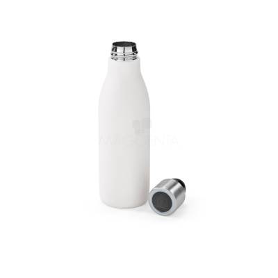 Garrafa térmica de parede dupla em aço inox com 90% de material reciclado, isolada a vácuo para maior eficiência térmica. Possui sistema de auto-sanitização por luz UV, que inativa vírus e bactérias no interior da garrafa, garantindo uma bebida mais segura. Capacidade de até 500 mL. Mantém líquidos quentes por até 5 horas e frios por até 15 horas.