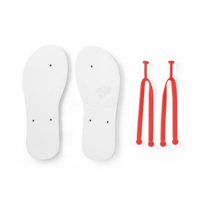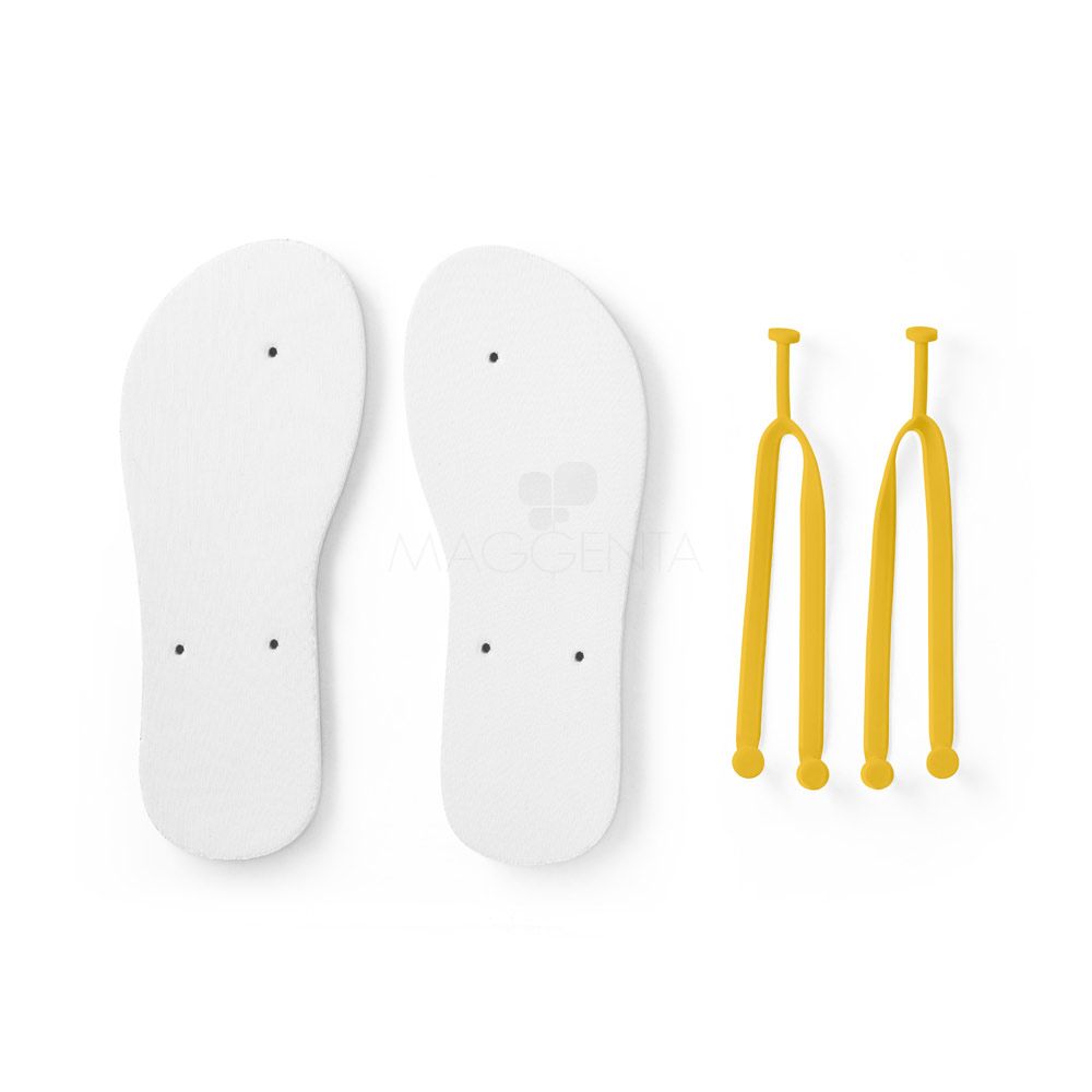 Chinelos confortáveis com sola em EVA e tira em PVC. A sola é totalmente personalizável em sublimação. Tamanhos disponíveis: G/GG (40 ao 43). Fornecidos em polybag. G/GG