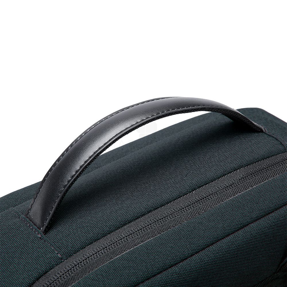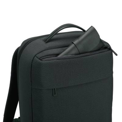 Mochila premium, produzida com poliéster acolchoado, alças de ombro acolchoadas, interior com divisórias com zíper para acomodar pequenos objetos, bolso frontal com zíper e na parte das costas uma divisória atrás, com engate para mala de viagem, aceita notebook de até 15,6”, porta USB na lateral.