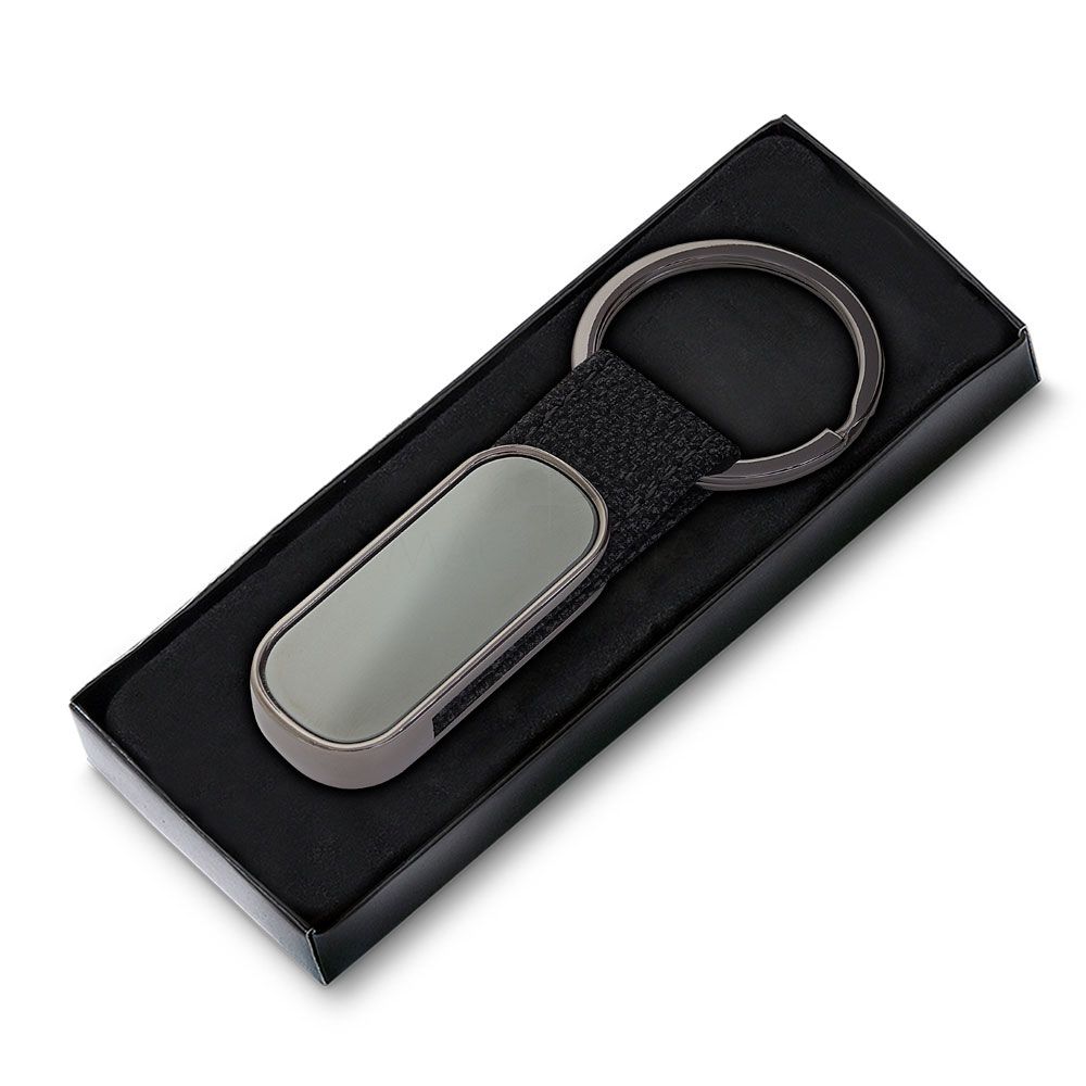 Chaveiro produzido em liga de zinco, ferro e PU, Acompanha estojo.