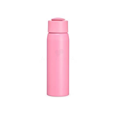 Garrafa alumínio 600ml com acabamento fosco. Possui tampa rosqueável com alça para transporte.