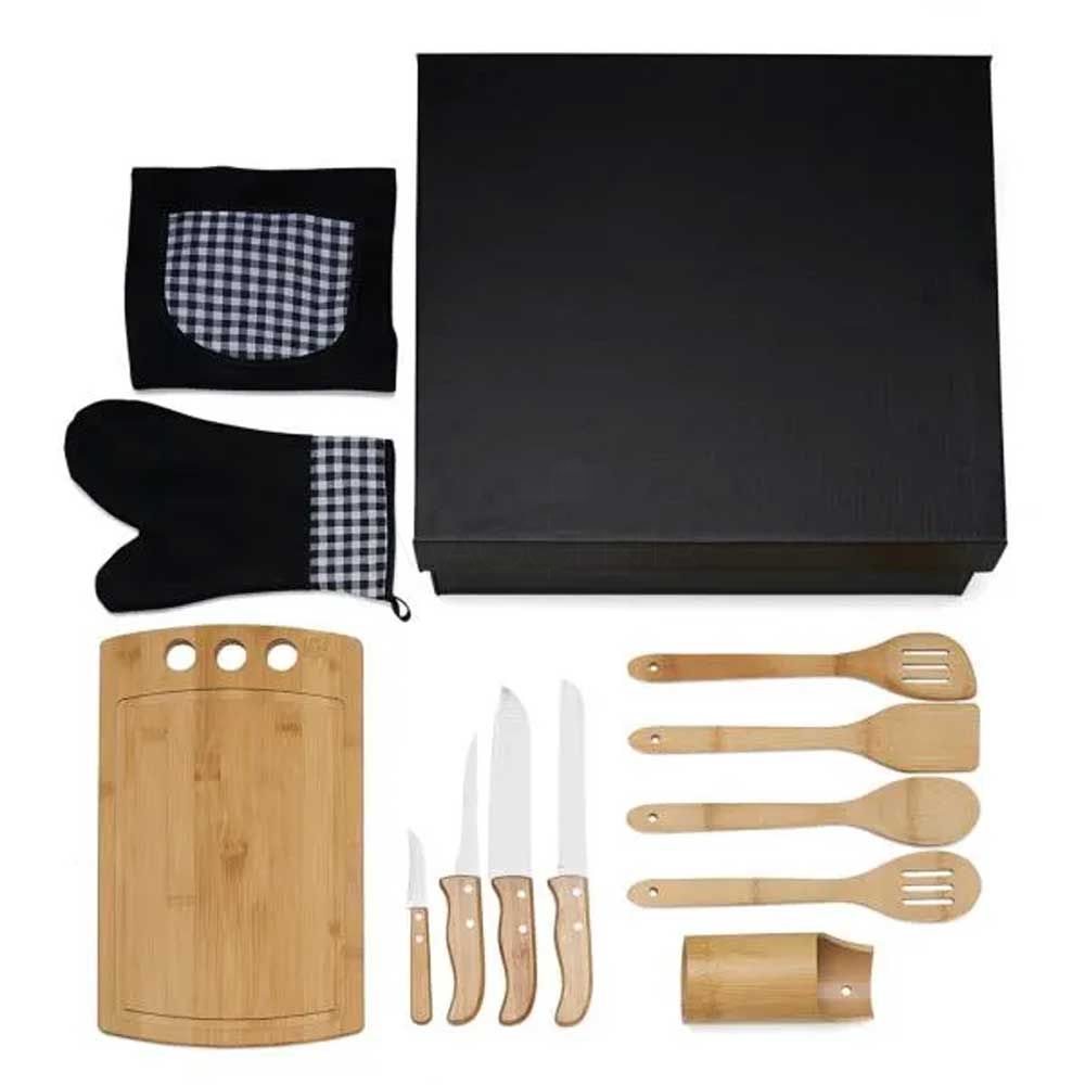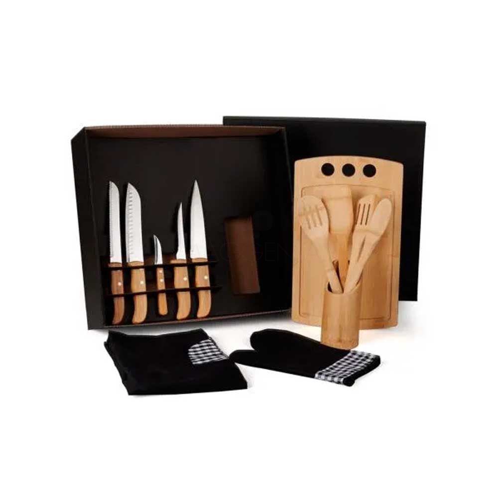Kit Gourmet Com Tábua, Facas, Colheres - 13 Peças para Brindes