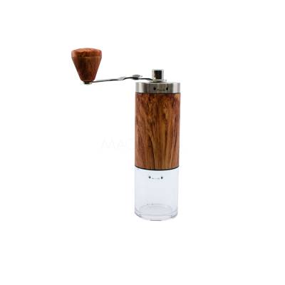 Moedor de Grãos de café manual em vidro, alumínio e madeira. Dimensão: 20x5cm