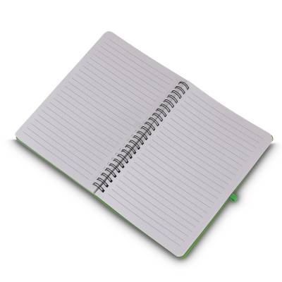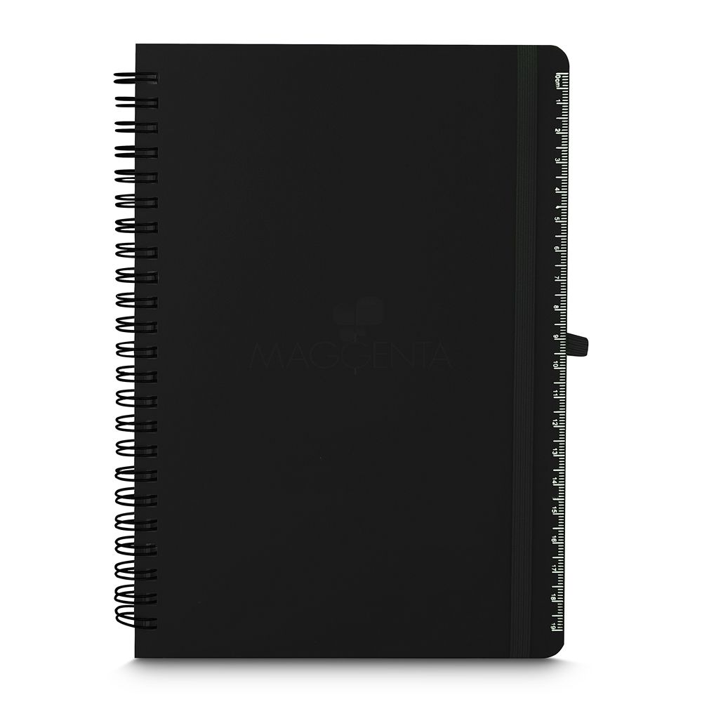 Caderno de anotações em PP(Polipropileno) reciclável com suporte para caneta e miolo de 70 folhas brancas pautadas. *Não acompanha caneta.