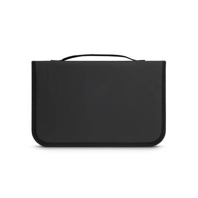 Kit churrasco em estojo de 210D. Composto por tábua em bambu e 3 utensílios em aço inox e madeira de Seringueira: faca japonesa, garfo e afiador.