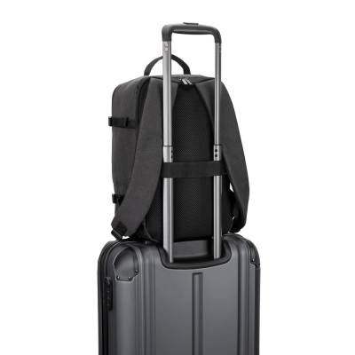 Mochila desenvolvida para cumprir as dimensões exigidas pelas companhias aéreas, permitindo-lhe viajar com tudo o que necessita como bagagem de mão. Composta em poliéster reciclado (rPET) 600D de alta densidade, com acabamento repelente à água, e forro em poliéster reciclado (rPET) 210D. Possui um compartimento principal amplo para roupa, um compartimento totalmente almofadado para um notebook até 14" e um bolso frontal.