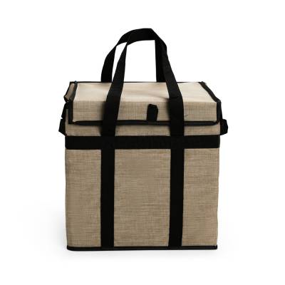 Bolsa térmica confeccionada em Oxford impermeável, fechamento em velcro e capacidade máxima de 35 litros. Conta com armação interna em placa de PVC e junção inferior em velcro, que facilita o transporte quando a bolsa não estiver em uso. Possui revestimento térmico interno em folha de alumínio e um par de alças de nylon para transporte.
