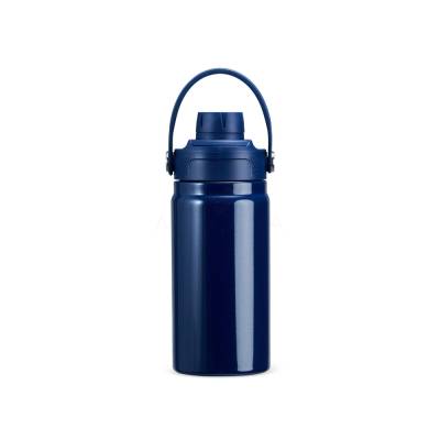Garrafa térmica em inox com capacidade para até 400ml. Apresenta estrutura de parede dupla e vedação a vácuo, que mantém a temperatura de líquidos por mais tempo sem transferência para o exterior. Possui tampa plástica rosqueável com protetor de o bocal e alça fixa para transporte.