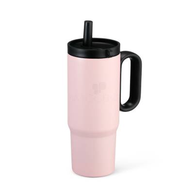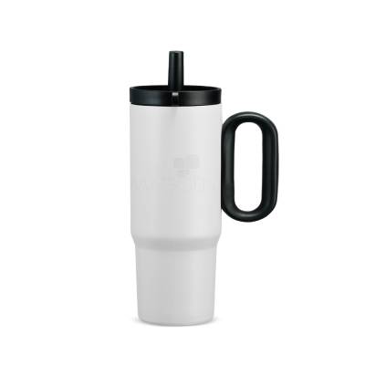 Caneca térmica em inox 304 com pintura eletrostática, alça lateral em plástico e capacidade de até 750ml. Conta com estrutura de parede dupla e vedação a vácuo para manter a temperatura de líquidos por mais tempo. Possui tampa plástica rosqueável com acesso para canudo, infusor removível e alça para fixação de chaveiro ou gancho. Acompanha canudo plástico para encaixe.