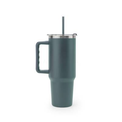 Copo de viagem de grande dimensão para se manter hidratado durante o dia sem a necessidade de recargas constantes. Composto por aço inox 91% reciclado, com parede dupla isolada a vácuo e acabamento em mate. Este copo pode ser utilizado de duas maneiras: através da sua abertura para canudo ou do orifício para utilização direta (pode ser fechado). A sua pega facilita o transporte quer seja para o trabalho ou para atividades ao ar livre. Capacidade até 1300 mL.