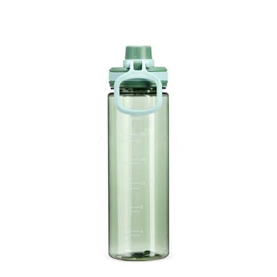 Garrafa plástica com capacidade máxima de 750ml e marcação impressa de volume de até 700ml. Possui tampa rosqueável com protetor para o bocal e alça para transporte.