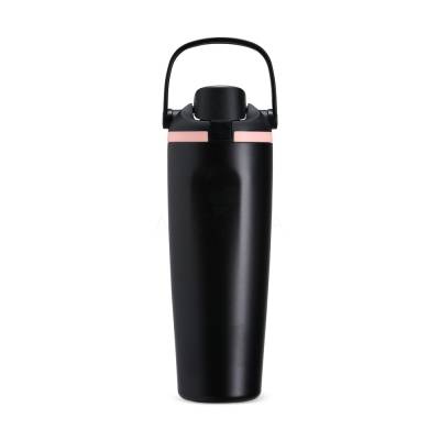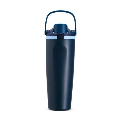 Garrafa térmica em inox com capacidade para até 850ml. Conta com estrutura de parede dupla e vedação a vácuo, ajudando a conservar a temperatura dos líquidos por mais tempo. Possui tampa rosqueável em plástico com protetor para o bocal, botão de acionamento, trava de segurança e alça de mão para transporte. Acompanha canudo para encaixe interno na tampa.