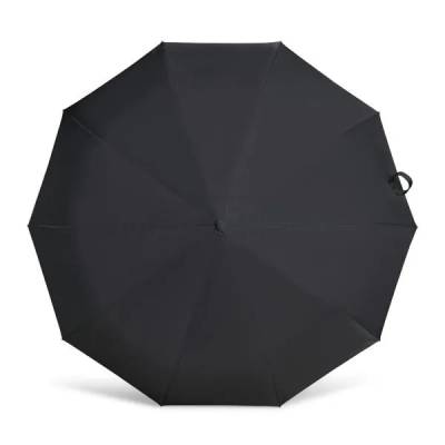 Guarda-chuva confeccionado em Nylon 190T na cor preta. Conta com ativação automática ao pressionar um botão, tanto para abrir quanto para fechar; empunhadura confortável com elástico para fixar no pulso, diminuindo o risco de queda e aumentando a segurança, com fechamento em velcro; capa em Nylon para melhor proteção e durabilidade.