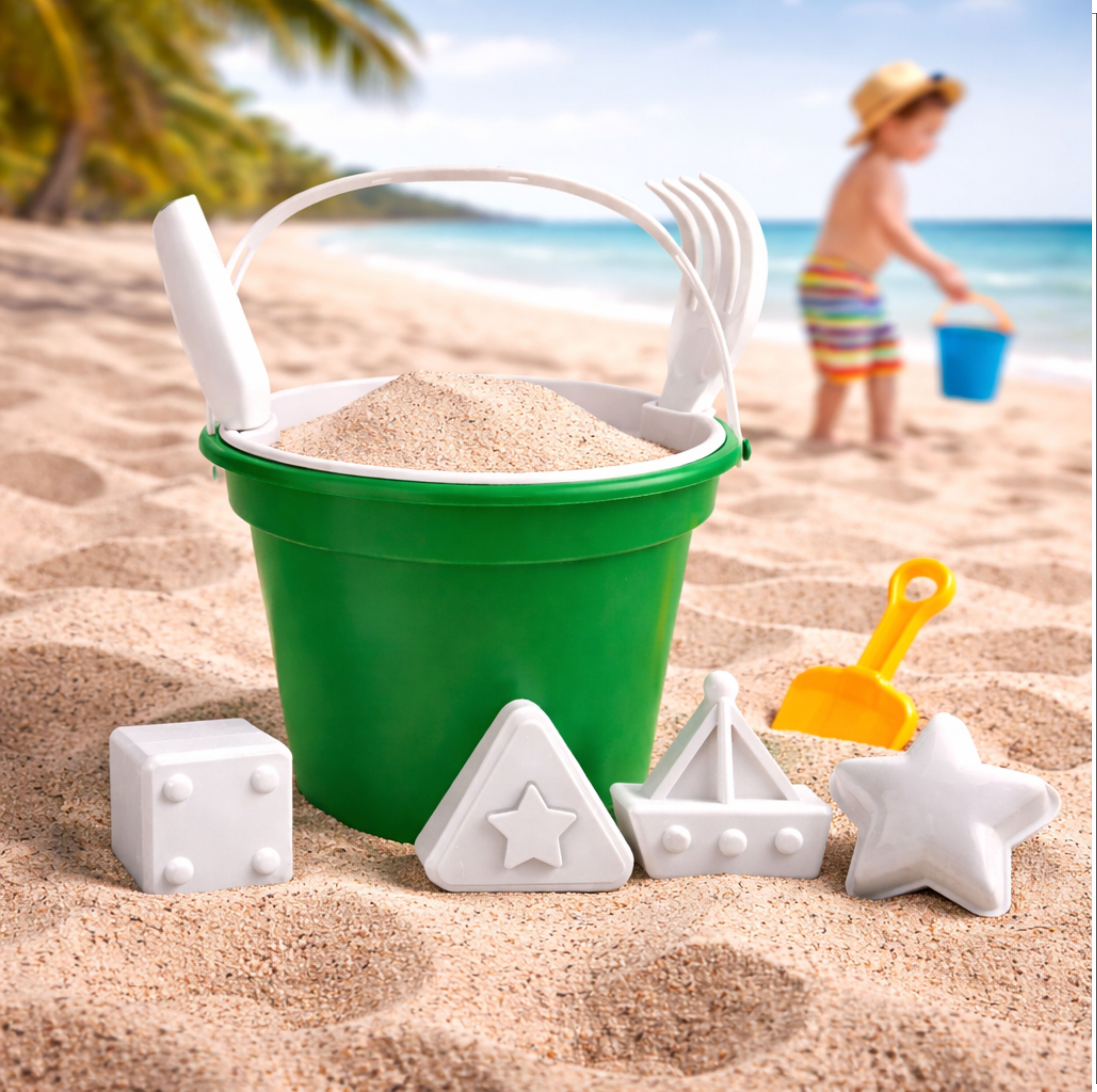Baldinho de Praia com Peneira, Pá e Rastelo e 1 Forma